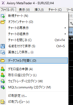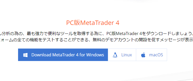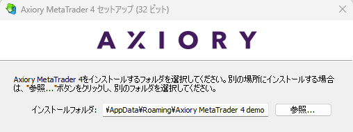 しょうがないので、AXIORYからMT4をダウンロードしてインストール。