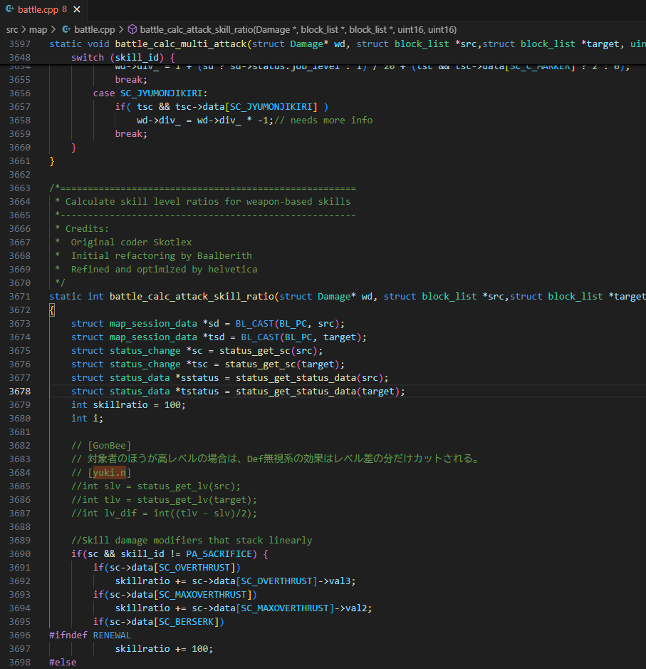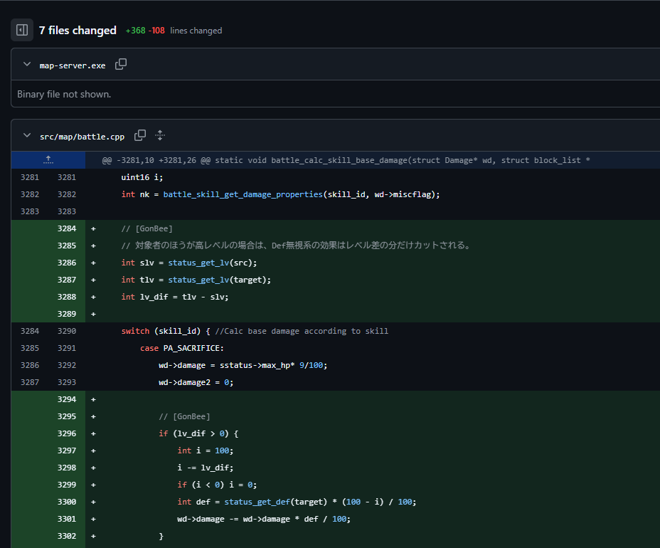 クリティカルやDEF無視の調整が行われたと思われるコミットから、修正された箇所を探して手動でマージ。
