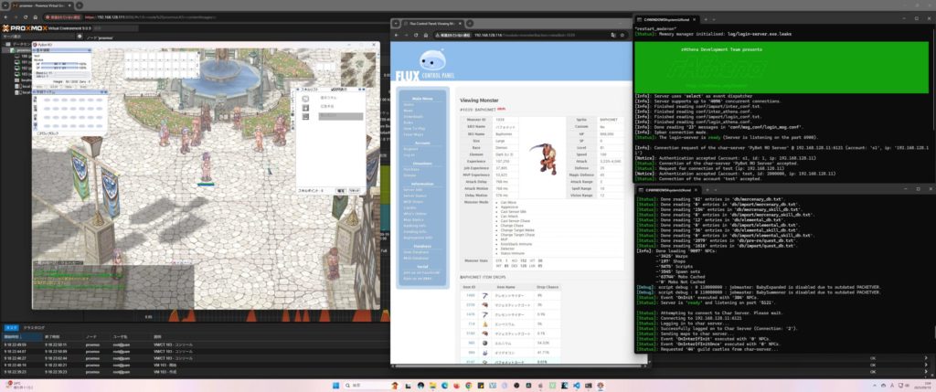 ミニPCのProxmox上でDB鯖とWeb鯖が動いているので、常にFluxCPが開けるので良いことにする。PyBotROの鯖はやりたい時にWindows上で起動すればよいだけだしね。